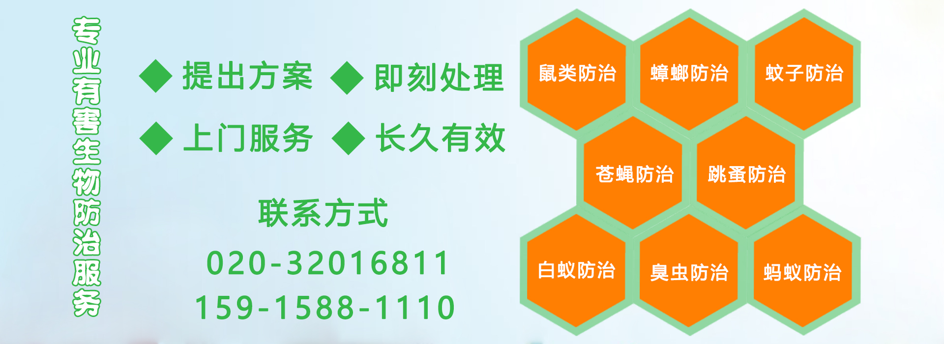 廣州億康環(huán)境科技有限公司聘請了多名資深業(yè)內(nèi)專業(yè)人士為顧問,擁有多名專家、教授組成的研發(fā)和客服服務(wù)團(tuán)隊,公司引入了現(xiàn)代企業(yè)管理體系,優(yōu)化了以客戶為中心的服務(wù)流程,優(yōu)秀的管理團(tuán)隊以高技術(shù)、高標(biāo)準(zhǔn)、高品質(zhì)服務(wù)確保我們客戶的滿意。經(jīng)過多年的努力,公司培養(yǎng)了一批技術(shù)過硬的高素質(zhì)專業(yè)服務(wù)隊伍,裝備了國內(nèi)外先進(jìn)的消殺器械和環(huán)保、安全、高效的藥物,以專業(yè)化的防治技術(shù)為社會各行各業(yè)提供優(yōu)質(zhì)高效的除害服務(wù)。